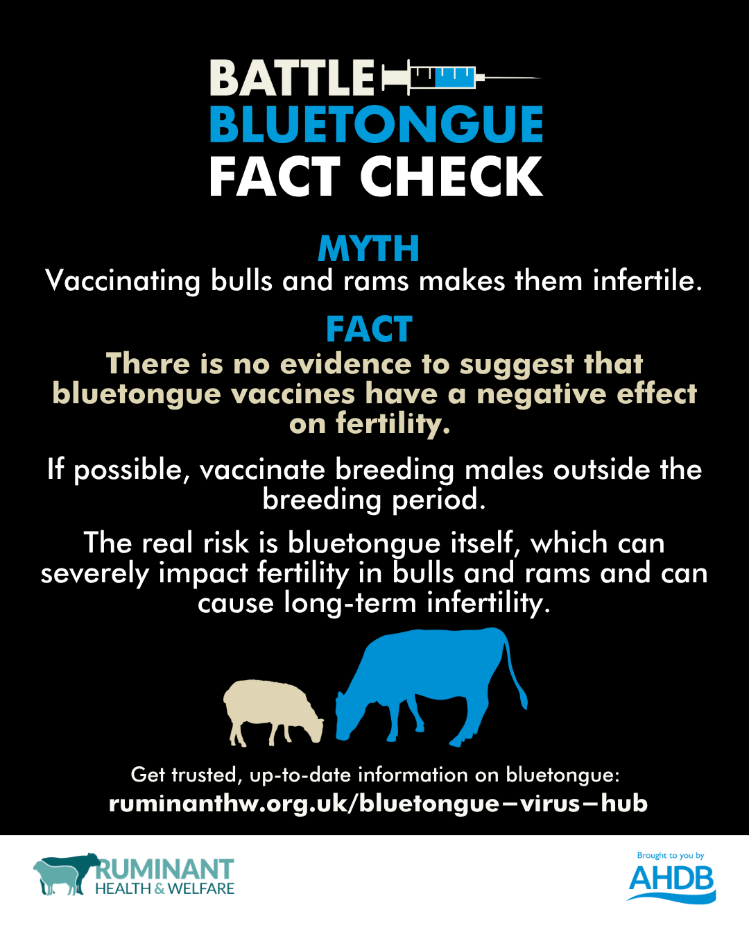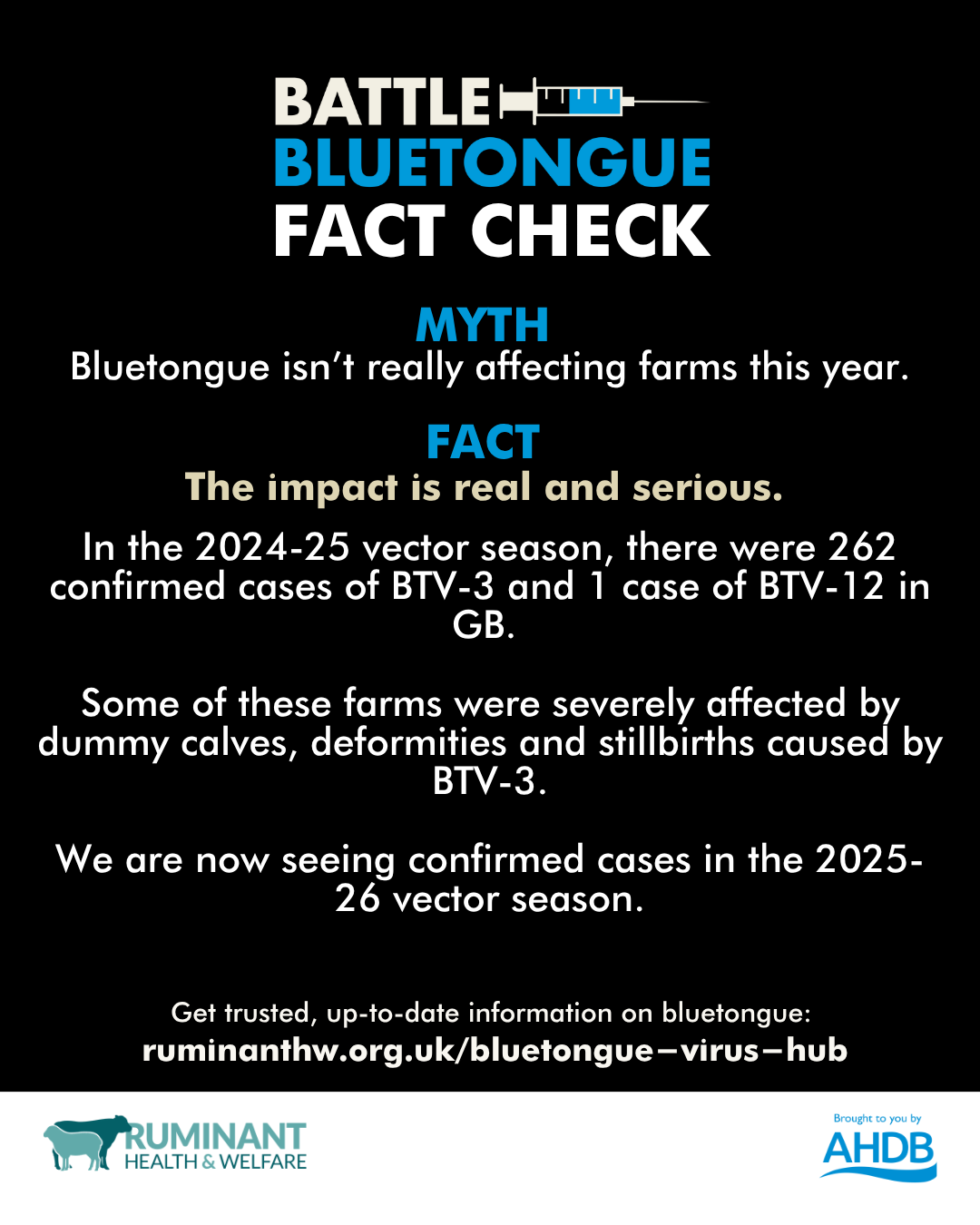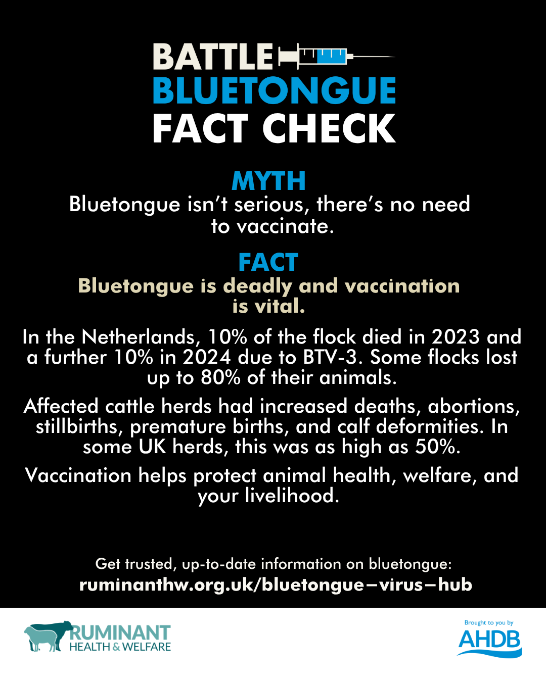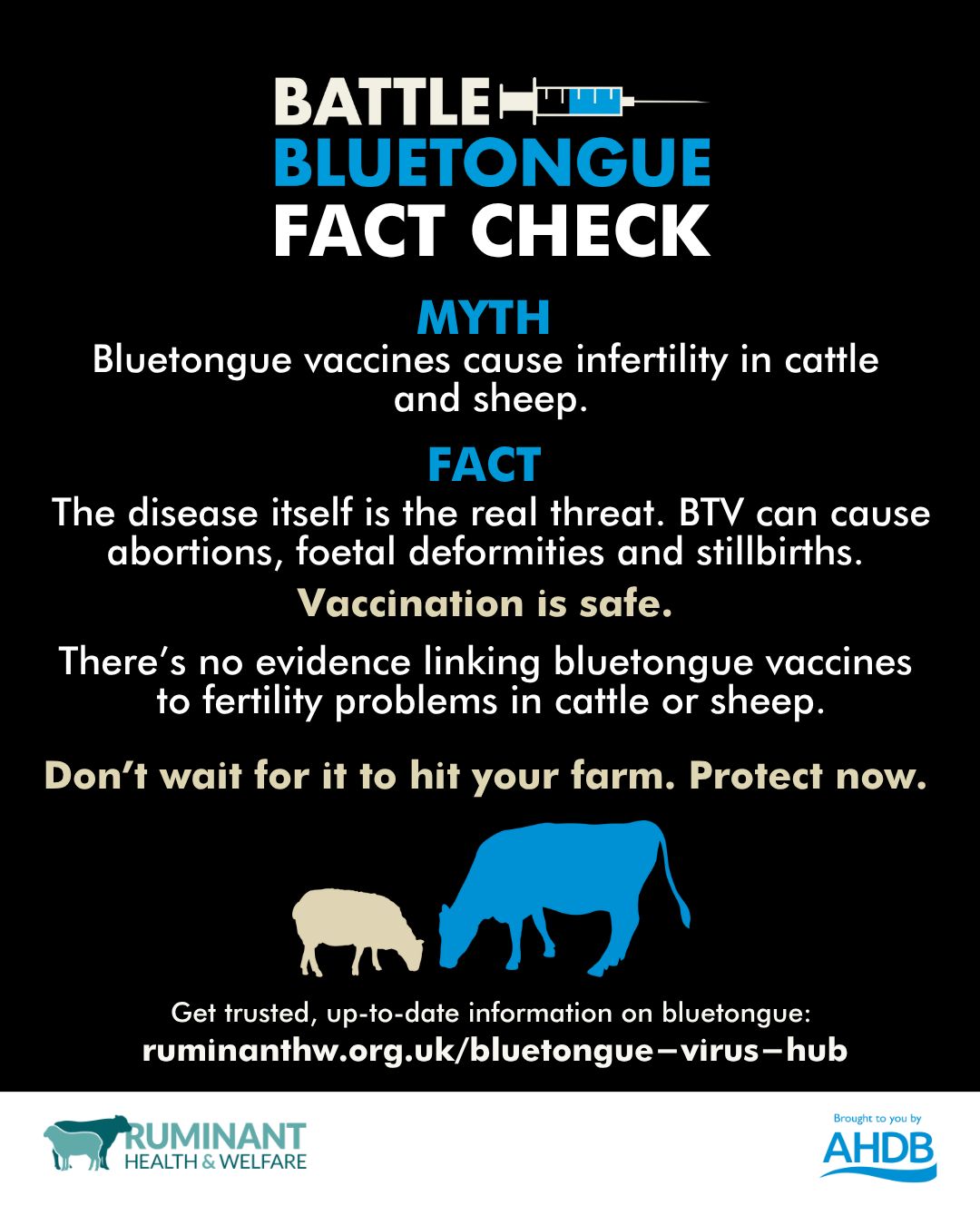 The proactive campaign – ‘Battle Bluetongue’ – has been developed by Agriculture and Horticulture Development Board (AHDB) and Ruminant Health & Welfare (RH&W) in collaboration with key veterinary and industry associations.